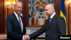 Раніше Байден зустрівся з виконуючим обов'язки президента Олександром Турчиновим і з прем'єр-міністром Арсенієм Яценюком та демократичними активістами.