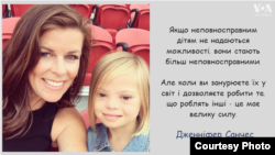 Короткі відео маленької дівчинки з синдромом Дауна, народженої в Україні та удочереної американською парою, облетіли Інтернет і підкорили серця мільйонів. На них семилітня Софія розповідає про те, що синдром Дауна «не страшний», і вся світиться впевненістю в собі та позитивом. «Голос Америки» поспілкувався з мамою дівчинки Дженніфер Санчеc.