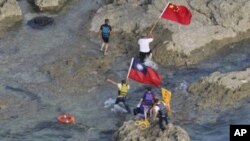 В середу активісти прибули на острів у Східно-Китайському морі, підняли китайський прапор і виконали національний гімн, після чого їх заарештовано і звинувачено в порушенні імміграційних законів.