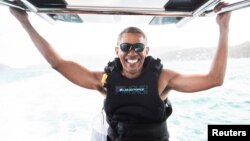 Обами провели десять днів на приватному острові, що належить мільярдеру Ричарду Бренсону. Там колишній президент насолоджувався водним спортом.