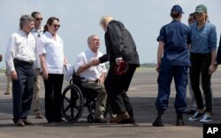 Президент Дональд Трамп відвідав центр допомоги у Г'юстоні в суботу, щоб зустрітися з жертвами «Гарві», катастрофічного урагану, що спричинив серйозні повені в Техасі та приніс найскладнішу внутрішню кризу молодій адміністрації.