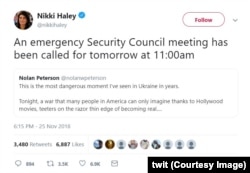 Гейлі також зробила ретвіт повідомлення американського журналіста Нолана Петерсона, який працює в Україні.